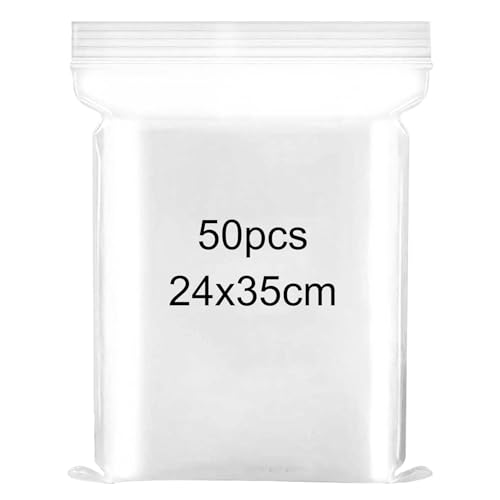 50 st återförslutningsbara genomskinliga plastpåsar stora Ziplock-påsar 24 x 35 cm förseglad väska förvaringsväska pressigillpåsar förtjockning och hållbar applicera på täcken filtar klädförvaring
