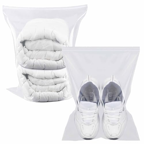 QISF Återförslutningsbara genomskinliga plastpåsar med Ziplock-påsar stor förseglad väska, pressförseglingsväskor, tjocka och robusta, stora förseglade väskor för täcken, filtar, klädförvaring, Vitt