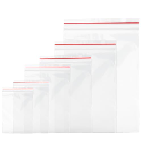 Baxcdyswe 500 stycken blixtlåspåsar, 5 storlekar tryckförslutande plastpåsar, dragkedja ziplock, återförslutningsbara påsar, förpackningspåsar polypåse, förseglad dragkedja, tryckförslutningspåse