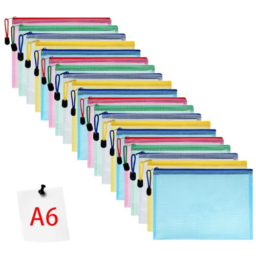 Vicloon Plastpåsar, återförslutningsbara plastpåsar i A6-format i nät, dokumentfodral, plastfickor med dragkedja, filmapp, för skola, kontor, läxor, reseförvaringspåsar, 20 st. (flerfärgade)
