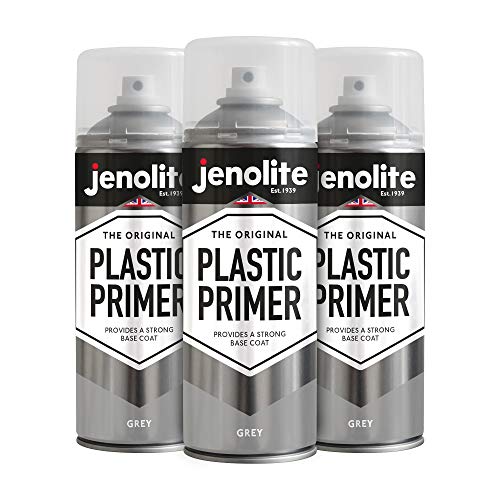JENOLITE Primer sprayfärg i plast | grå | plastprimer av högsta kvalitet | främjar vidhäftning | primer sprayfärg för bilar, trädgårdsmöbler, modeller och annan hårdplast | 3 x 400 ml