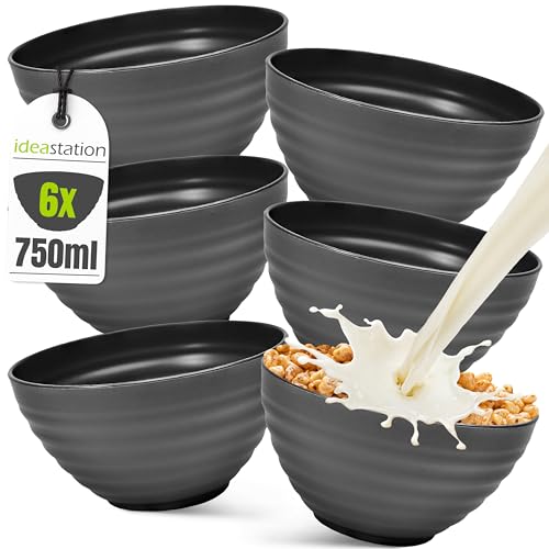 Bugucat 6 st spannmålsskål, 1400 ml, soppskålar, stor kapacitet, frukostskål i plast, dessertskål för Ramen salladssopp, plastskålar för BBQ och camping, svart
