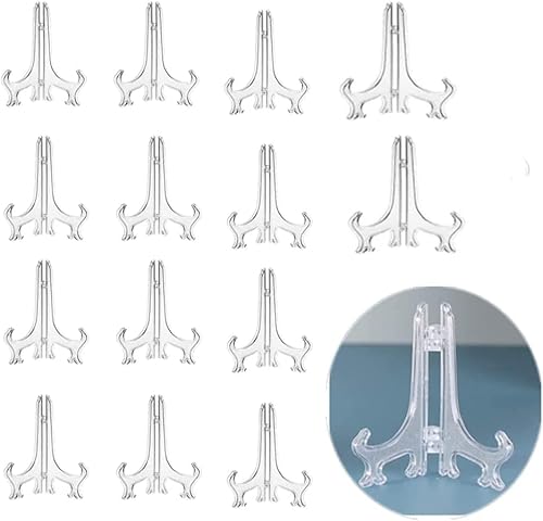 Naisfei 15 stycken tallriksställ i plast, stafflier av plast för tallrikar, tallriksställ, vikbar plastskålar tallrikshållare transparent (4 tum)
