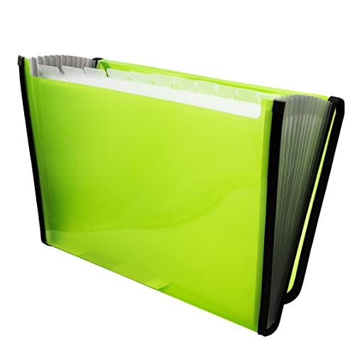 Raylu Paper® - Dragspelsdokumentsorteringsmapp med 12 fack, plastskåp för kontor med separatorer och förstärkta kanter (Ljusgrön)