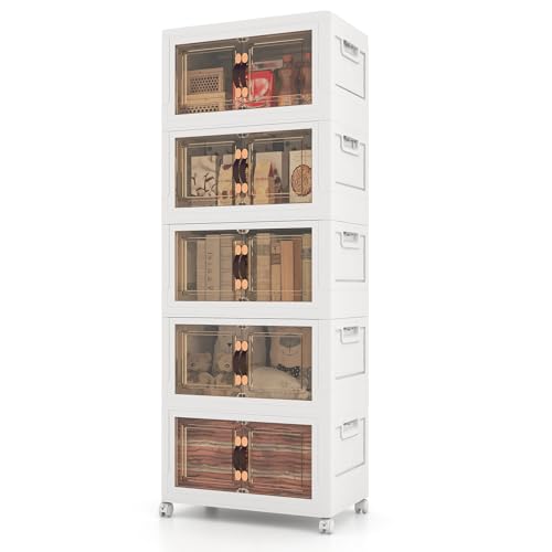 KOMFOTTEU Plastbehållare med lock med behållare och dörrar förvaringslåda med 4 hjul, plastskåp, varje våning tar upp till 5 kg (superstor 5 behållare)