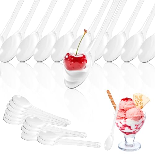 DAJAVE 400 stycken små plastskedar, 12 cm glasskedar, plast, kaffeskedar plast, återanvändbara högpresterande plastskedar dessertsked för dessert pudding mousse party