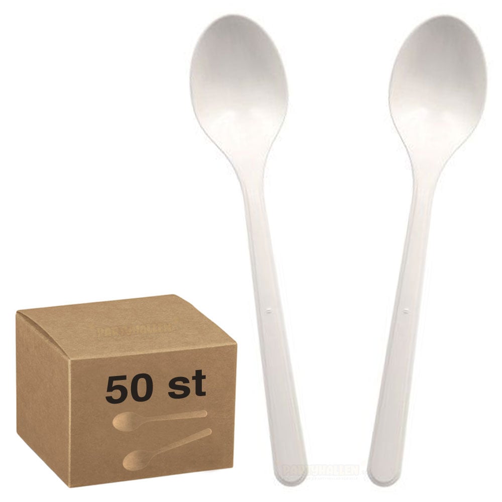 Vita Återanvändbara Plastskedar 50-pack