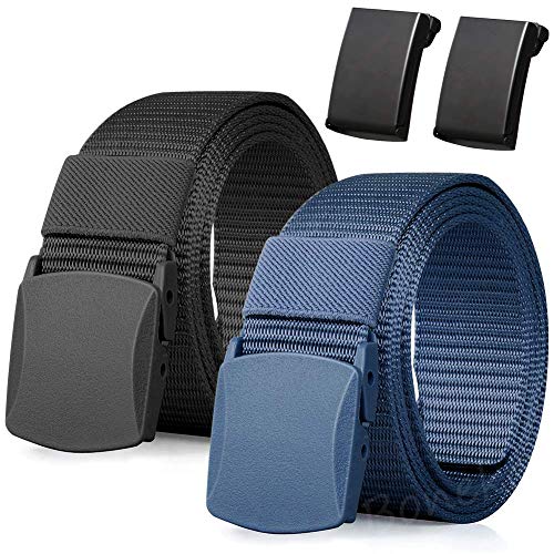 Nylon bälte, 2 Pack Män Militär Taktisk Andningsbart bälte, snabbt genom flygplatsens säkerhet, Metallspänne + Plastspänne, 51.18in (130cm)