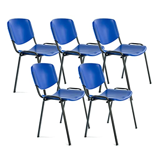 OFITURIA Kontorsstol utan hjul, pålitlig metallram plaststol, stol för väntrum, mottagning, möten, konferenser, osv. (5 stolar, blå)