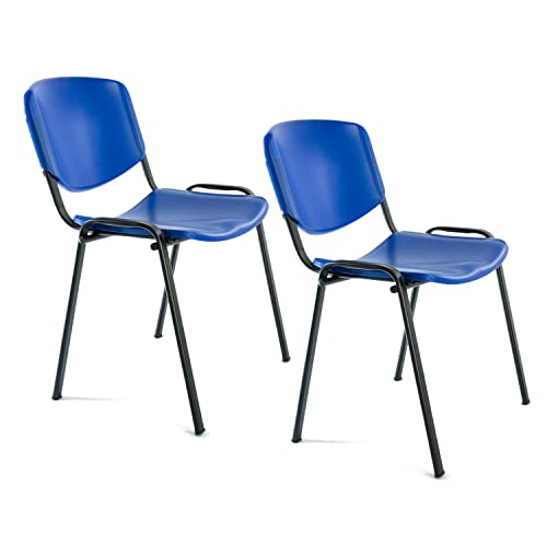 OFITURIA Kontorsstol utan hjul, pålitlig metallram plaststol, stol för väntrum, mottagning, möten, konferenser, osv. (2 stolar, blå)