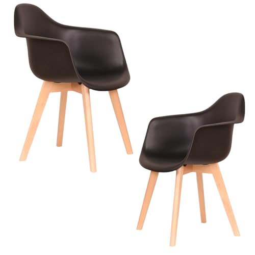 GrandCA HOME Set med 2 matsalstolar, matrumsstolar, set om 2, fåtöljstol, lämplig för sovrum, kök, matsal, kontor, plaststol, ben av massivt trä (svart, 2)