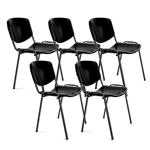 OFITURIA Kontorsstol utan hjul, pålitlig metallram plaststol, stol för väntrum, mottagning, möten, konferenser, osv. (5 stolar, svart)