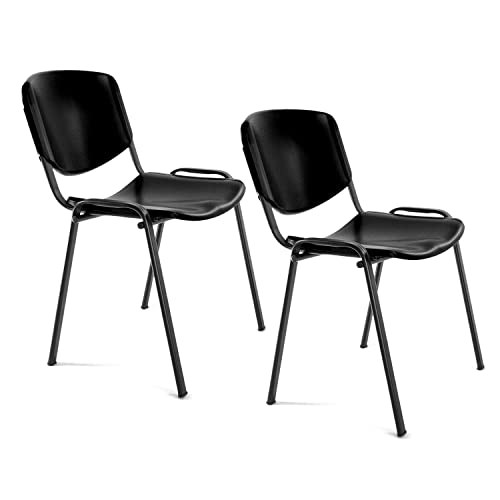 OFITURIA Kontorsstol utan hjul, pålitlig metallram plaststol, stol för väntrum, mottagning, möten, konferenser, osv. (2 stolar, svart)