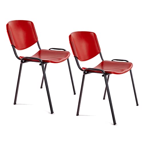 OFITURIA Kontorsstol utan hjul, pålitlig metallram plaststol, stol för väntrum, mottagning, möten, konferenser, osv. (2 stolar, röd)