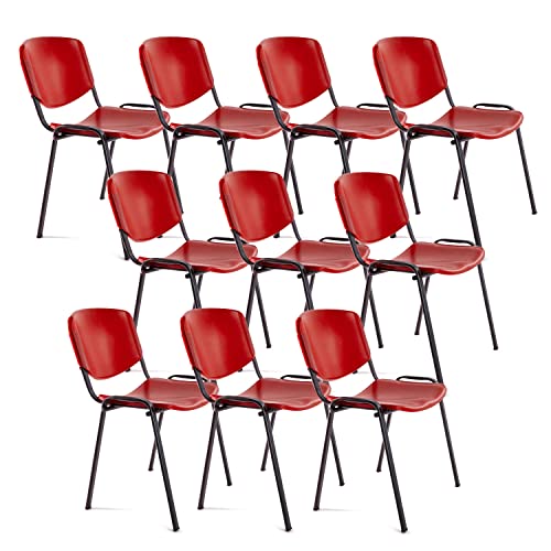 OFITURIA Kontorsstol utan hjul, pålitlig metallram plaststol, stol för väntrum, mottagning, möten, konferenser, osv. (10 stolar, röd)