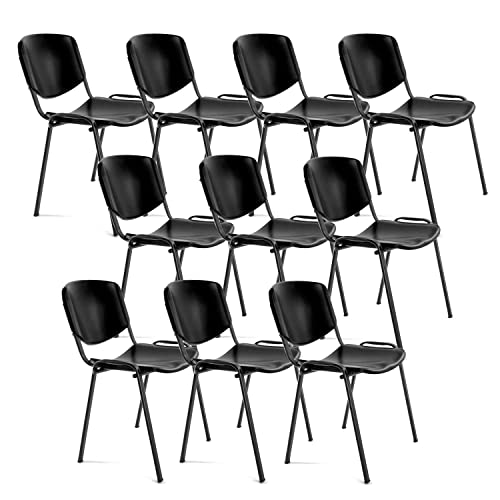 OFITURIA Kontorsstol utan hjul, pålitlig metallram plaststol, stol för väntrum, mottagning, möten, konferenser, osv. (10 stolar, svart)