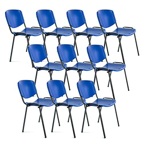 OFITURIA Kontorsstol utan hjul, pålitlig metallram plaststol, stol för väntrum, mottagning, möten, konferenser, osv. (10 stolar, blå)