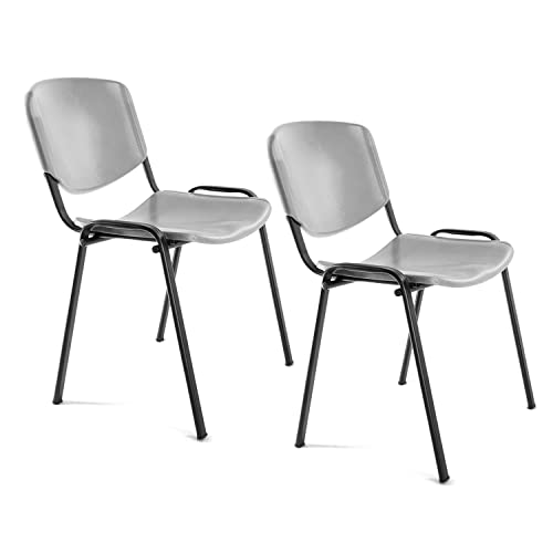 OFITURIA Kontorsstol utan hjul, pålitlig metallram plaststol, stol för väntrum, mottagning, möten, konferenser, osv. (2 stolar, grå)