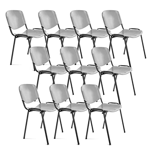 OFITURIA Kontorsstol utan hjul, pålitlig metallram plaststol, stol för väntrum, mottagning, möten, konferenser, osv. (10 stolar, grå)