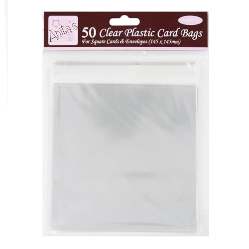 Anitas fyrkantiga kortväska, 145 x 145 mm, klar, 50-pack, plastväska, kortskyddsväska, för hem, konst, hantverk, korttillverkning