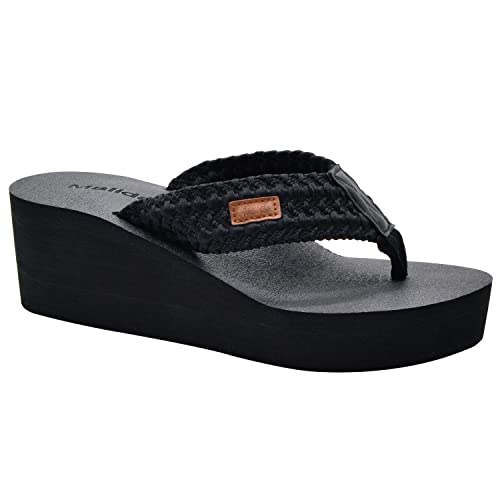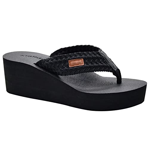 MALIDA Womens Wedge Arch Support Flip Flops Cushion Soft Rubber Midsole Platform Thong Sandals with Rubber Sole,Black US 8