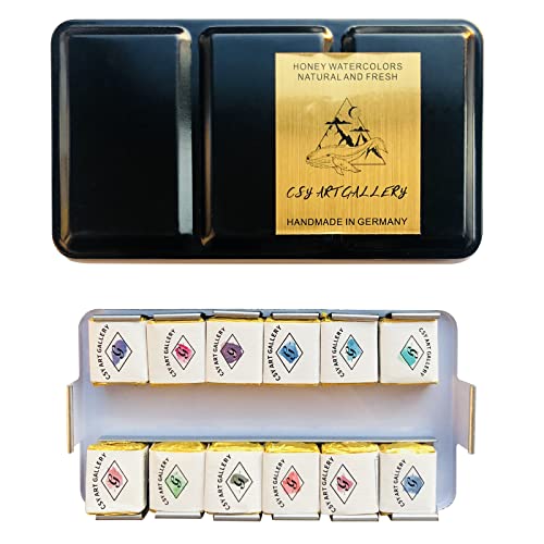 Csy Art Gallery Metalliska akvarellfärger handgjorda glitter skimrande dubbelfärg akvarell enfärgad inkluderar 12 färger vattenfärg i bärbar plåtlåda för konstnärer, proffs