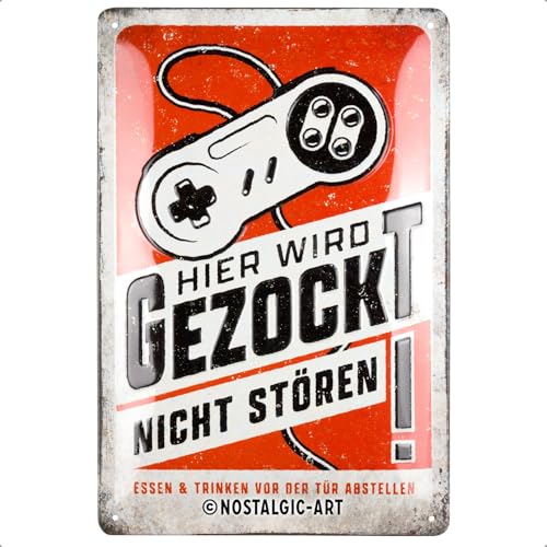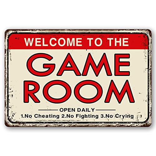 Nostalgisk konst retro plåtskylt, 20 x 30 cm, här kommer att bli leken – presentidé för spelare, gjord av metall, vintage design med ordspråk, plåtskyltar ordspråk