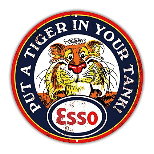 Reproduktion vintage plåtskyltar, gasolja bil metallskyltar för garage man grotta bar, retro väggdekor (Esso - rund)