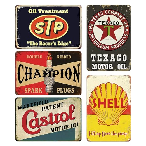 SPORWAY Uppsättning av 5 garage plåtskyltar: 20 x 30 cm plåtskyltar retro, vintagedekoration, retro plåtskylt, bilaffisch motorolja butik metallskyltar husvägg rumsdekoration bar dekoration (5 st. 1)