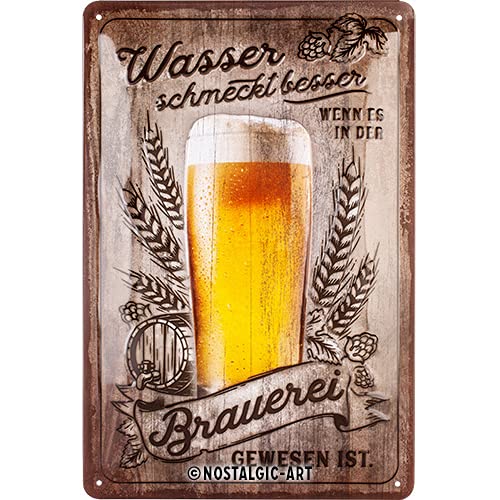 Nostalgisk konst retro plåtskylt, 20 x 30 cm, vatten smakar bättre – presentidé för ölfans, gjord av metall, vintagedesign med ordspråk, plåtskyltar ordspråk, öldekoration
