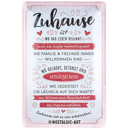 Nostalgisk konst retro plåtskylt, 20 x 30 cm, hem är – presentidé för ditt hem, gjord av metall, vintagedesign med ordspråk, plåtskyltar ordspråk
