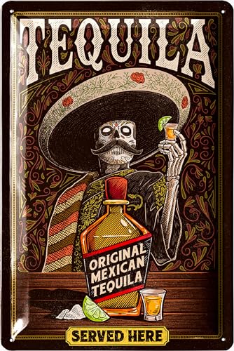 LANOLU Plåtskyltar retro bar dekoration – TEQUILA SERVED HERE – vintage metallskylt cocktailskylt present – kök-dekoration 20 x 30 cm