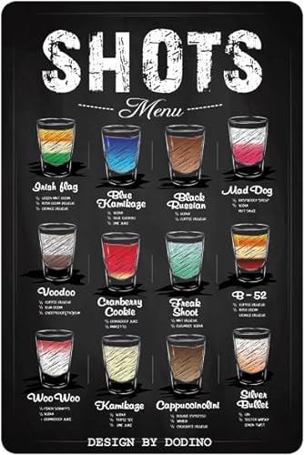 DODINO 20 x 30 cm retro plåtskyltar SHOTS MENU vintage plåtskyltar för kaféer barer man Caves kök och mer