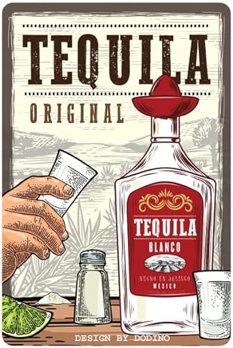 DODINO 20 x 30 cm retro plåtskyltar TEQUILA bar dekoration cocktailskylt som present, köksdekoration