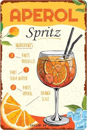 DODINO 20 x 30 cm retro plåtskyltar APEROL SPRITZ dekorativ skylt, bar, recept cocktailskylt, sprizz med prosecco