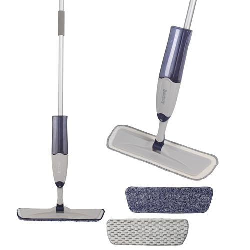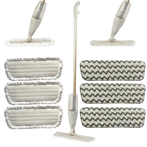 Mikrofiberspraymoppar för golvrengöring – MEXERRIS golvmopp med sprej, 4 x återanvändbara, tvättbara dynor, dammvåta torra moppar med 2 x flaskor, platt mopp för trägolv, trägolv, laminatplattor, golv