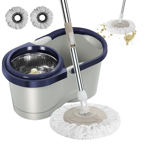JOYMOOP Mopp och hink med vridare set för hem, platt mopp och hinksystem, moppar för golvrengöring och väggrengöringsmedel, med 3 återanvändbara mikrofibermoppdynor