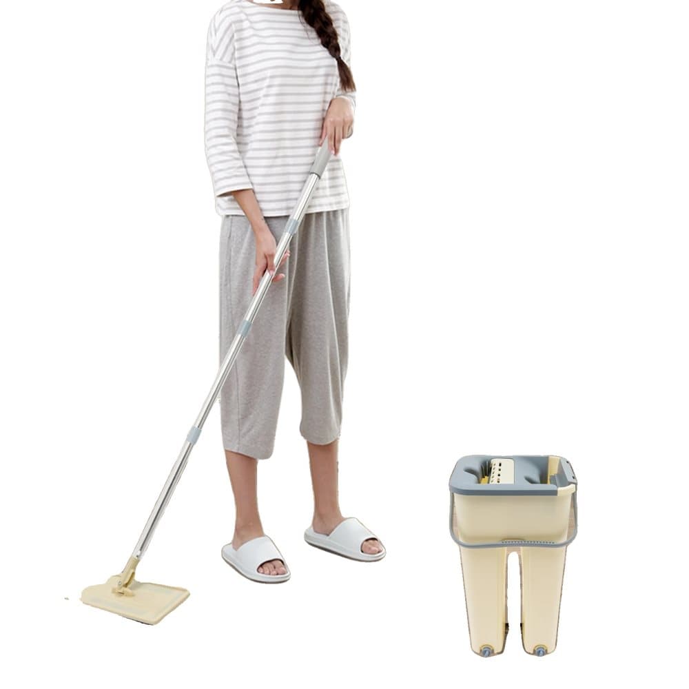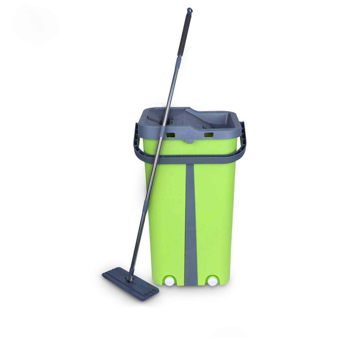 Möbler Xtra mopp och hink set. Mikrofiber platt mopp för våt och torr med handtag i rostfritt stål, dubbel kammarhink lämplig för alla golv