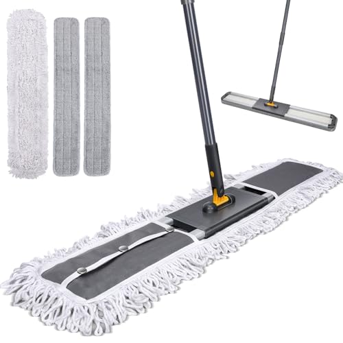 MASTERTOP Slitstark industriell mopp, 90 cm bred stor kommersiell platt mopp med 155 cm teleskophandtag, dammsopare moppar med 3 återanvändbara dynor, professionella golvmoppar för lager, kontor