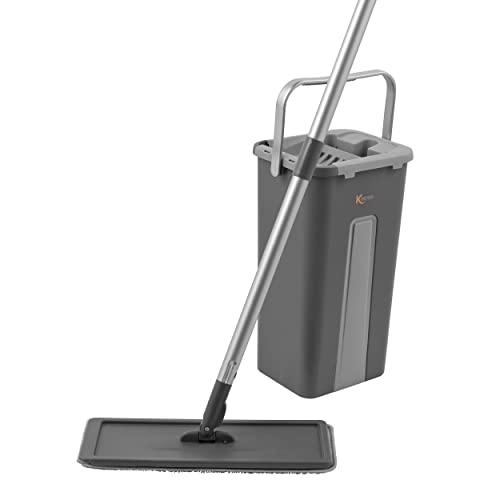 KADAX mopp för olika ytor, robust golvtorkare med dubbelkammarhink, platt torkare, rengöringsanordning med två mikrofiberinlägg (grå/orange)