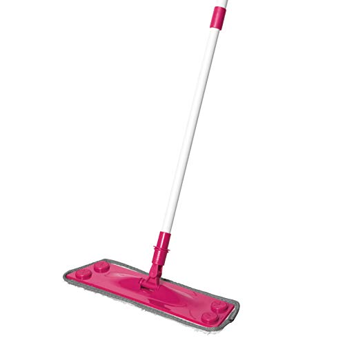 Kleeneze KL065957EU 4-delat rengöringsset, inkluderar platt mopp, mikrofiberdammvippa, mopphuvud och utbytbart handtag, kompakt design, grå/rosa