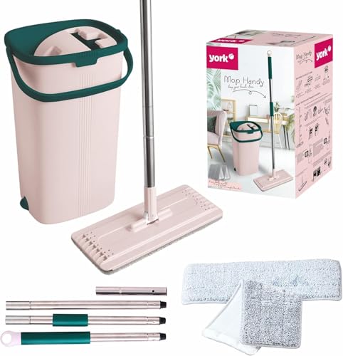 York Golvmopp Set – Handy | Platt, Svängbar med två Kammare Rengöringshink | Mopp med Urvridningsfunktion | Våt-torr Rengöring | Torkarset Praktisk och Kompakt, Rosa grön, M, 4081710-001829