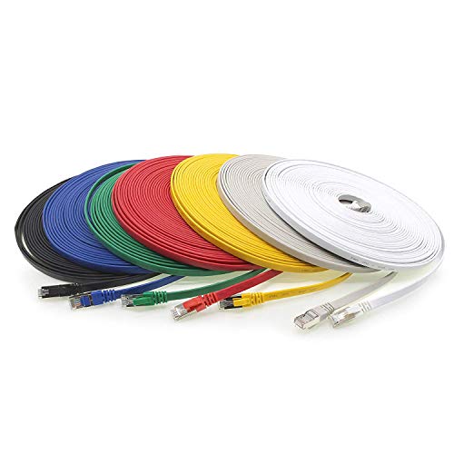 1aTTack.de Cat.7 platt nätverkskabel 10GB/s Slim Flat RJ45 patchkabel installationstejp - kompatibel CAT5 CAT6 CAT7 CAT 8 7 färger - 7 st 0,25 m