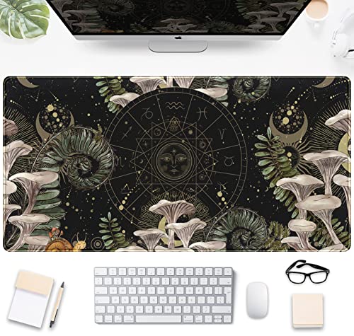 DSKGSJH Måne svamp spelbord dyna söt mörk tarot musmatta matta, skog utökad stor anime-mus, speldekor inställning, fullt tangentbord XXL, bärbar dator 80 cm x 40 cm, svart platt svamp, (XCMDHL)