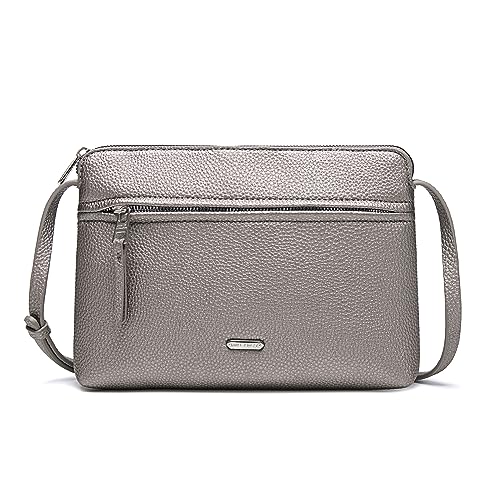 David Jones - Dam Liten Axelremsväska - PU Läder Axelväska - Klassisk Platt Väska - Elegant Stadsväska 2 Fack - Arbete Vardag Mode Trendig Chic Praktisk Fritid Kontor Pending Stad Resa - Silver