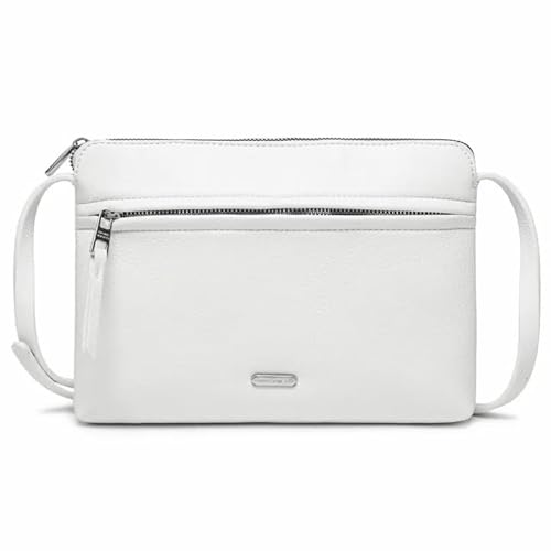 David Jones - Dam Liten Axelremsväska - PU Läder Axelväska - Klassisk Platt Väska - Elegant Stadsväska 2 Fack - Arbete Vardag Mode Trendig Chic Praktisk Fritid Kontor Pending Stad Resa - Vit