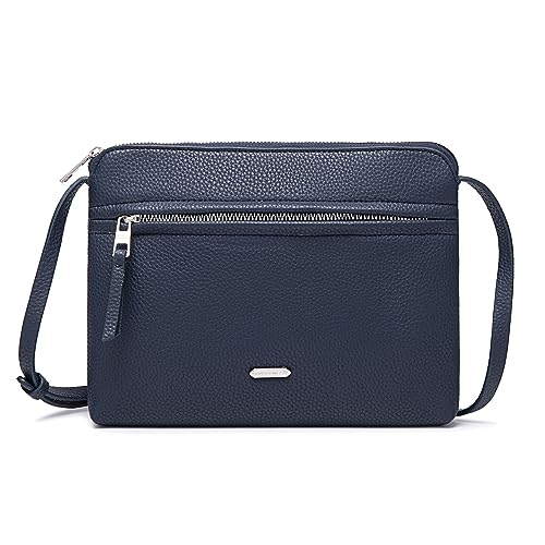 David Jones - Dam Liten Axelremsväska - PU Läder Axelväska - Klassisk Platt Väska - Elegant Stadsväska 2 Fack - Arbete Vardag Mode Trendig Chic Praktisk Fritid Kontor Pending Stad Resa - Blå