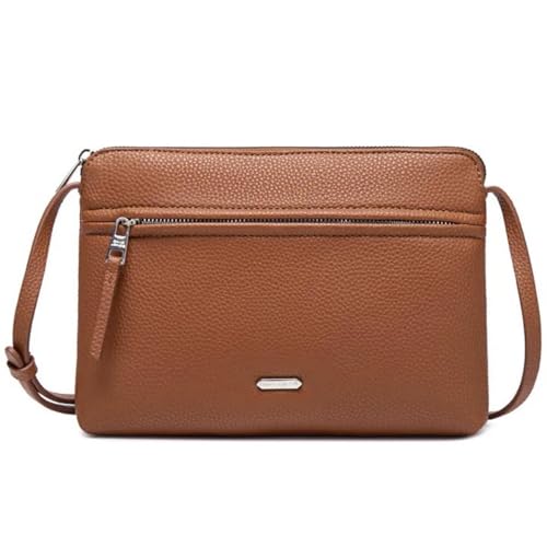 David Jones - Dam Liten Axelremsväska - PU Läder Axelväska - Klassisk Platt Väska - Elegant Stadsväska 2 Fack - Arbete Vardag Mode Trendig Chic Praktisk Fritid Kontor Pending Stad Resa - Cognac Brun
