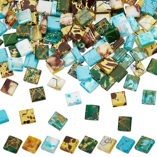 PH PandaHall 160 st 8 färger, 2-håls glasfröpärlor för St. Patrick's Day rektangel hantverkspärlor fyrkantiga platta pärlor distanspärlor för armband, halsband, smyckestillverkning, 5 mm