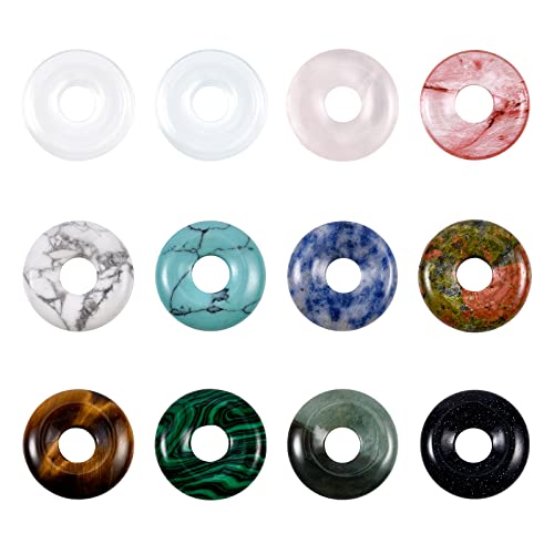 BENECREAT 12 st munkformade skivor naturliga stenhängen, 12 blandade färger, ädelsten, munkberlocker, platta runda pärlor (18 x 4,5 mm) hål: 5,5 mm hängen för smyckestillverkning